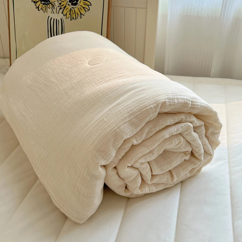 Esta manta de verão em algodão lavado foi desenvolvida para oferecer frescor e conforto nos dias mais quentes. Leve, macia e respirável, ela é ideal para uso com ar-condicionado ou para quem prefere uma cobertura suave e confortável. Feita com tecido amigo da pele e acabamento de alta qualidade, proporciona uma sensação agradável ao toque e um descanso mais relaxante.