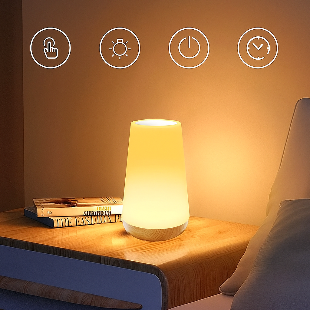 Esta luminária de mesa portátil oferece iluminação quente e suave com ajuste de brilho e um completo show de cores RGB que transforma qualquer ambiente. Com sensor touch no topo, controle remoto, 5 níveis de intensidade e 13 cores selecionáveis, ela é perfeita para criar clima aconchegante, relaxante ou funcional.