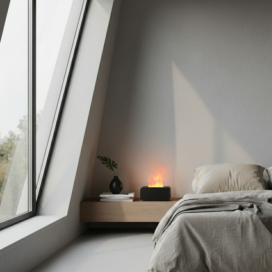 • Efeito chama realista: Iluminação quente e suave que simula uma chama, criando um clima relaxante e elegante.